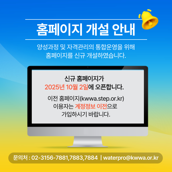 양성과정 운영과 자격관리의 원스톱 서비스 제공을 위해 자격홈페이지가 새롭게 오픈됩니다.