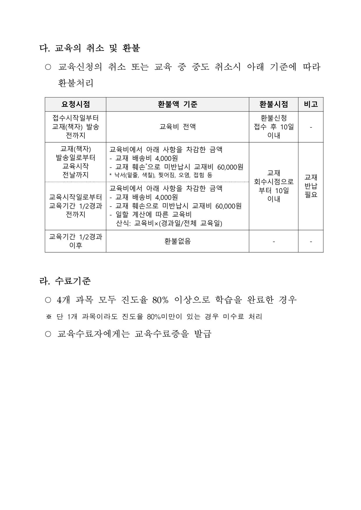 교육내용 및 이수기준